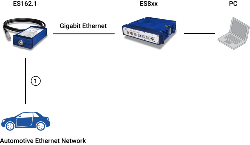 The ES162.1 is designed to connect to an Automotive Ethernet Network and a ETAS ES8xx module.