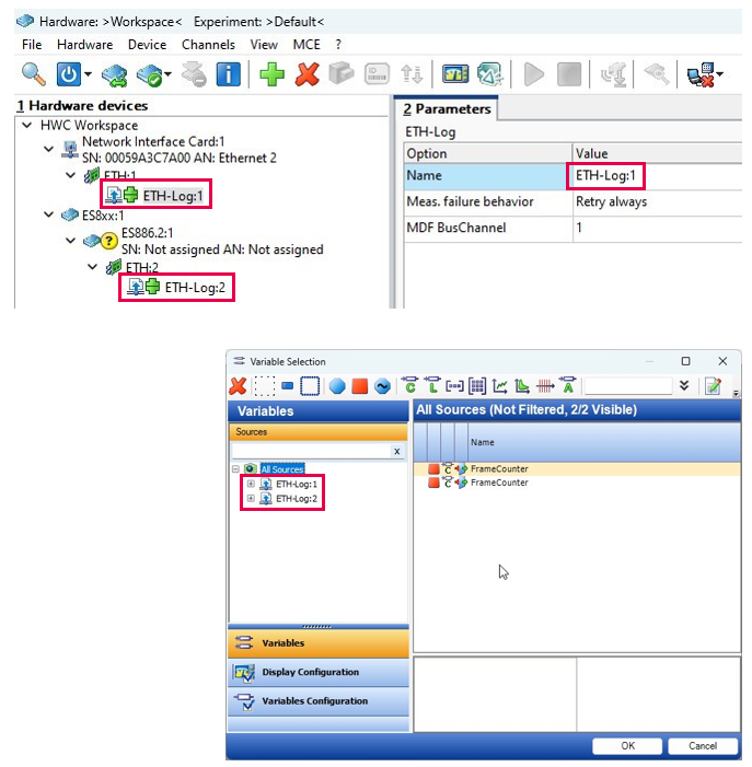 Use case: FrameCounter signal needs to be configured for a recorder to activate Ethernet bus logging to MDF