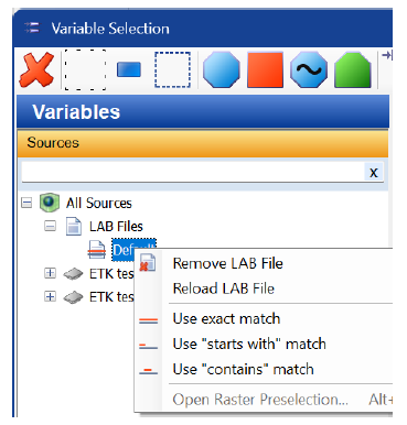 In the Variable Selection window, you can select one of these options by using the context menu for the LAB file.