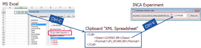 MS Excel allows to format cells in various ways. To avoid wrong pasted values, INCA uses the MS Excel specific clipboard format.