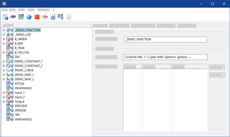 You see the definitions and properties of measure and calibration variables, functions, etc., in a graphical user interface and can edit them as required.
