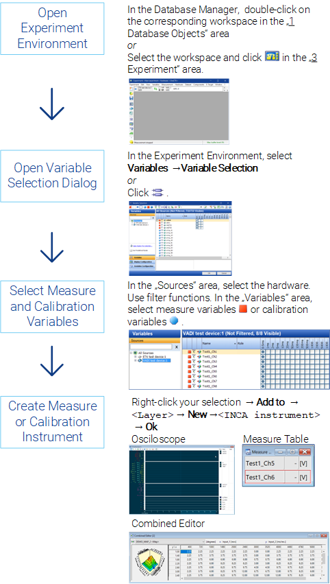 Depending on the hardware configuration used in the workspace, the experiment only provides the measure and calibration variables for selection which are defined in the connected hardware.