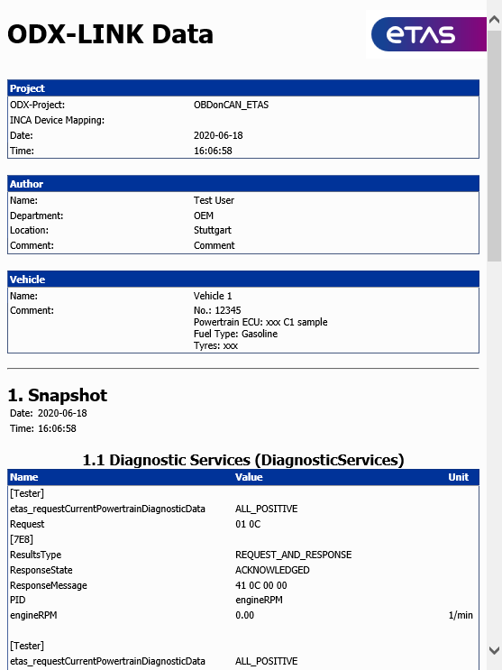 A snapshot saves the diagnostic data currently stored in all snapshot-relevant ODX-LINK user views. Please ensure that the windows are updated manually before the snapshot function is triggered! |