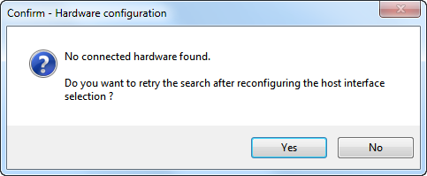 A dialog listing all host interfaces is displayed. Check whether the host interfaces used by the connected hardware are selected. Change the selection if required and click OK.