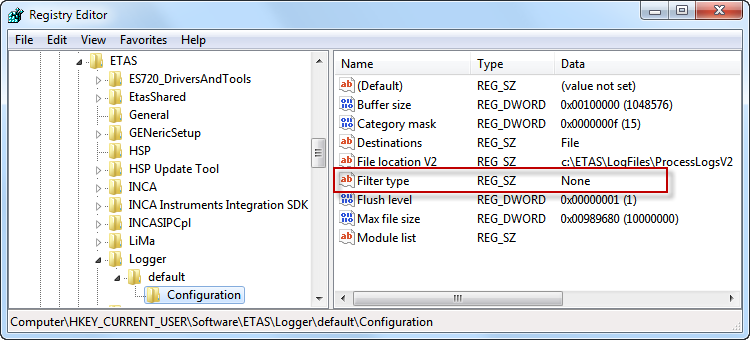 HKEY_CURRENT_USER\SOFTWARE\ETAS\Logger\Default\Configuration