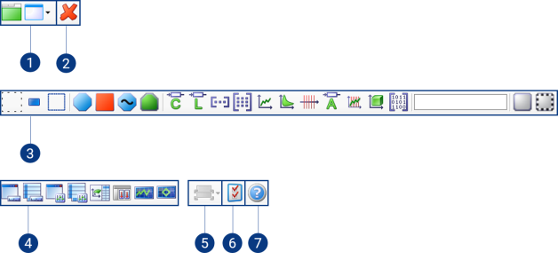 | Opens a selection with which you can add new measure/calibration windows to the experiment. |