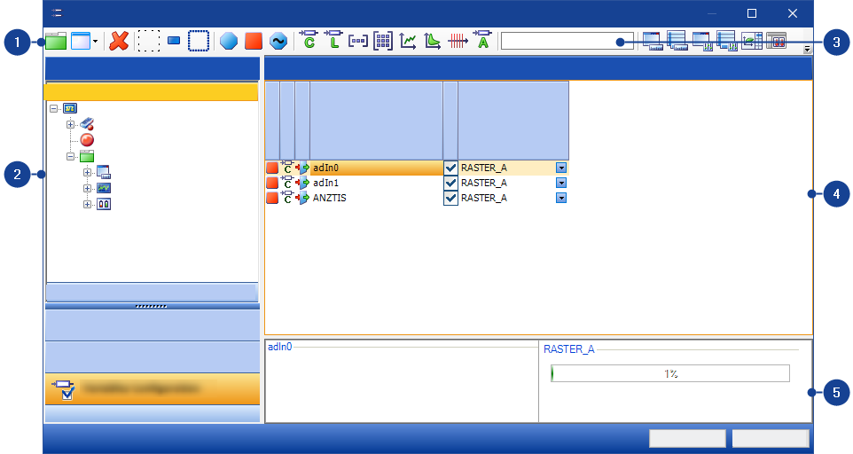 In the toolbar of the Variables Configuration tab, the following groups of functions are available: