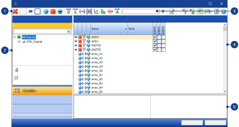 | Predefined Raster | Predefined rasters are rasters which an A2L project optionally defines for a variable. Predefined rasters are used when the checkbox Use Predefined Rasters in the Source pane is enabled. |