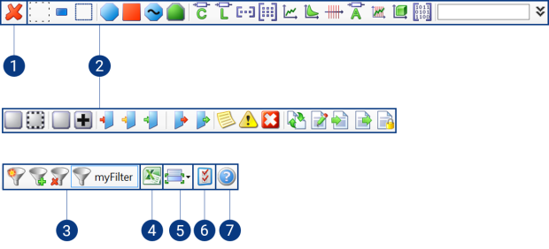 To manage the filter configurations, the toolbar provides the following functions: