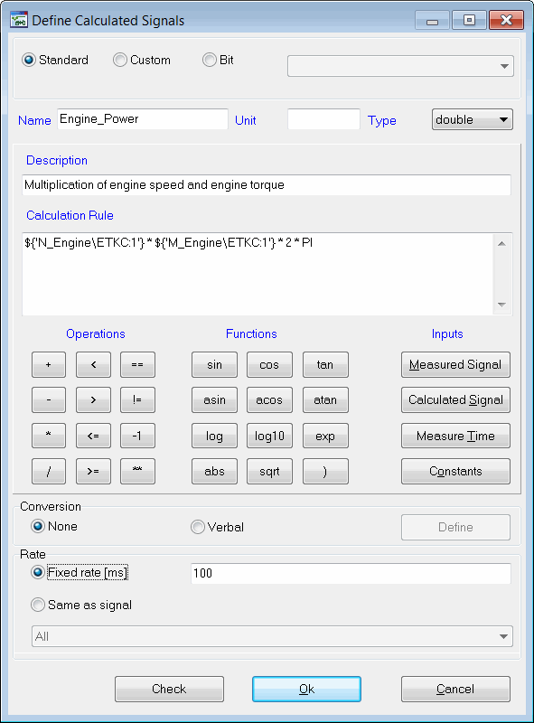 This formula is defined in the DefineCalculated Signals dialog box in the following way: