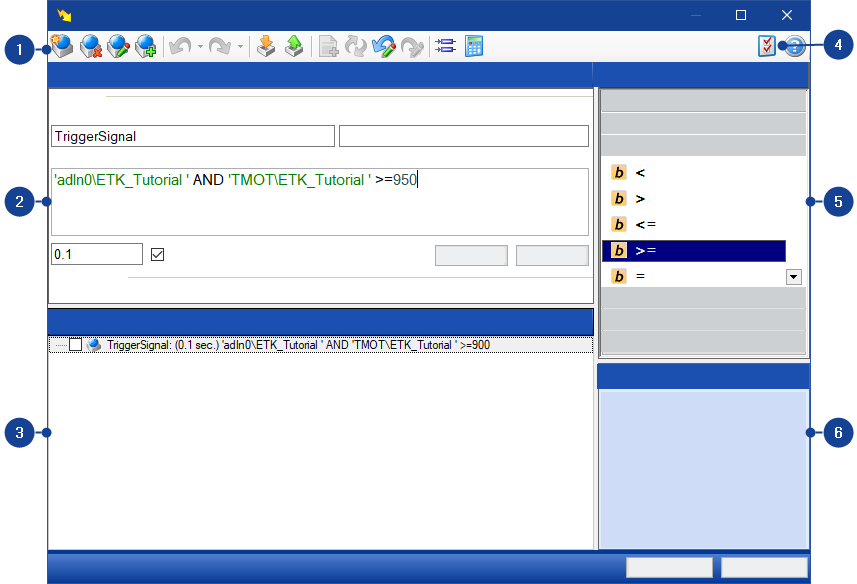| Opens the Calculator. The most frequently used operations for the trigger definitions can be found here. |