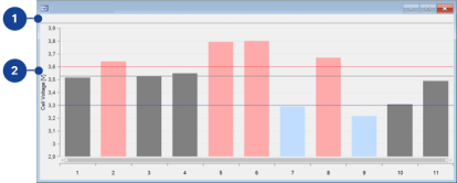 The graph shows the measure variable values of all variables as vertical bars. The height of each bar represents the value of the specific measure variable. Measure variables whose values exceed the lower or upper limit are highlighted.