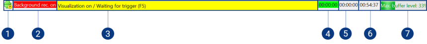 Displays the current status whether a background recorder is on or off, see Overview of Recorder Manager. The recorder status is only displayed if a background recorder is enabled.