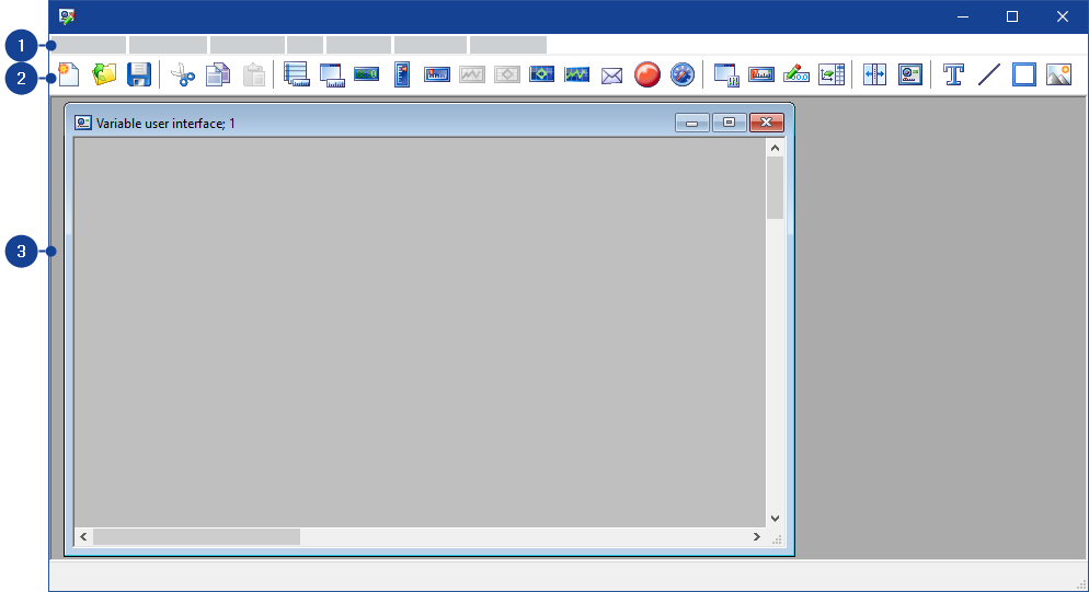 The workspace of this window contains further windows in which you can process variable user interfaces.