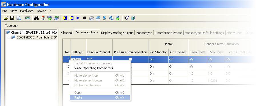 The Lambda module detects automatically the sensor type via a memory chip in the sensor splitter cable. You can select any set of pre-defined configuration parameters from the Presets field on the Sensor Preset tab that matches the group of sensors that the detected sensor type belongs to.