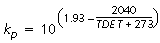 The relationship between the water-gas equilibrium temperature, TDET, and the customary factor kp is explained in the equation below:
