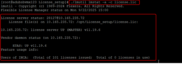 ./lmutil lmstat -a -c license.lic