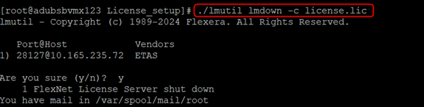 Fahren Sie den Lizenzserver mit dem folgenden Befehl herunter: