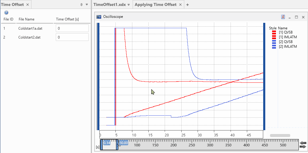 Working with several measure files usually requires to align the time line of the different files such that the actual data can be compared.