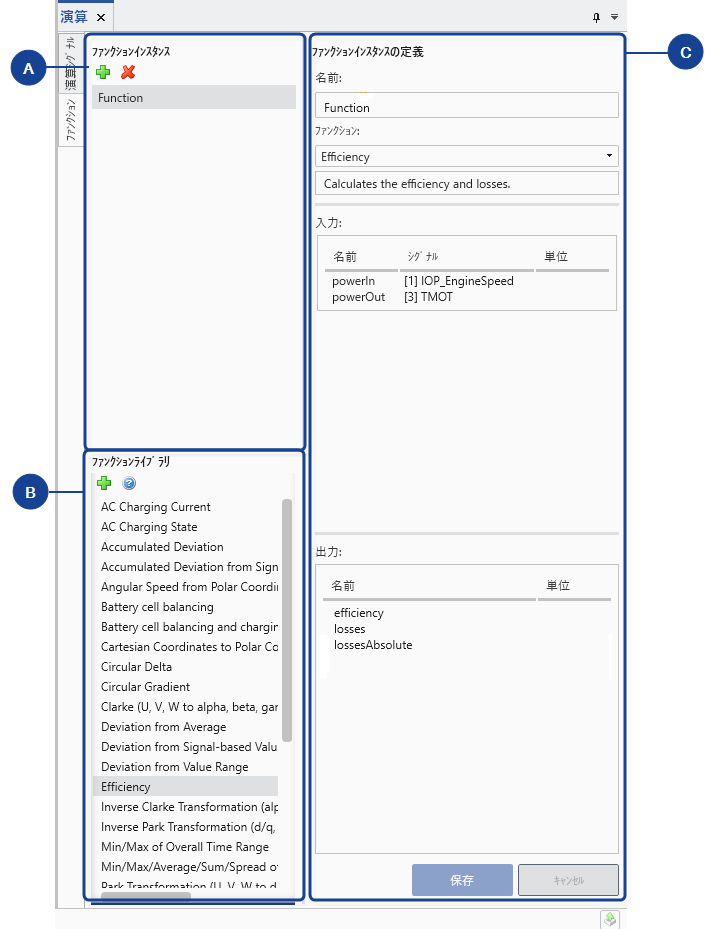 ファンクション タブでは、ASCMOのFMU(ファンクショナルモックアップユニット)に含まれる複雑な演算を、容易に利用することができます。