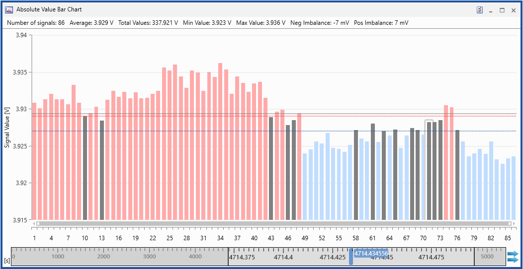 The Absolute Value Bar Chart allows you to get an overview of the signal values and and to identify the signals which exceed a lower or upper limit at the given point in time.